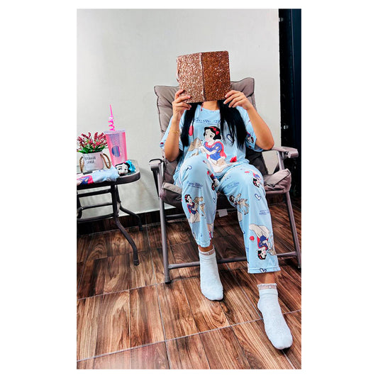 Pijama Mujer Top/Short Frescas Moda "Muñeca Y Emojis De Fueguitos"