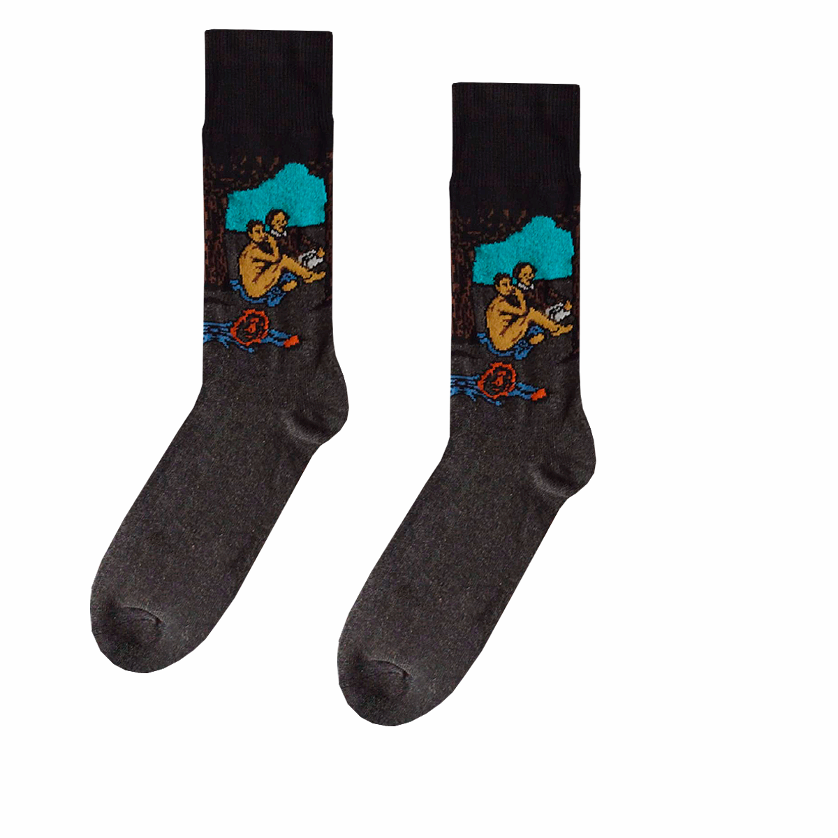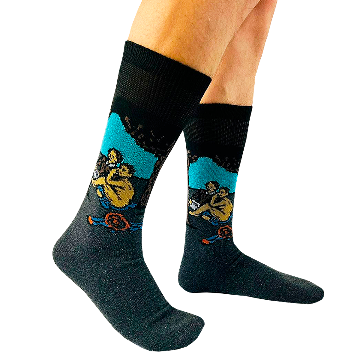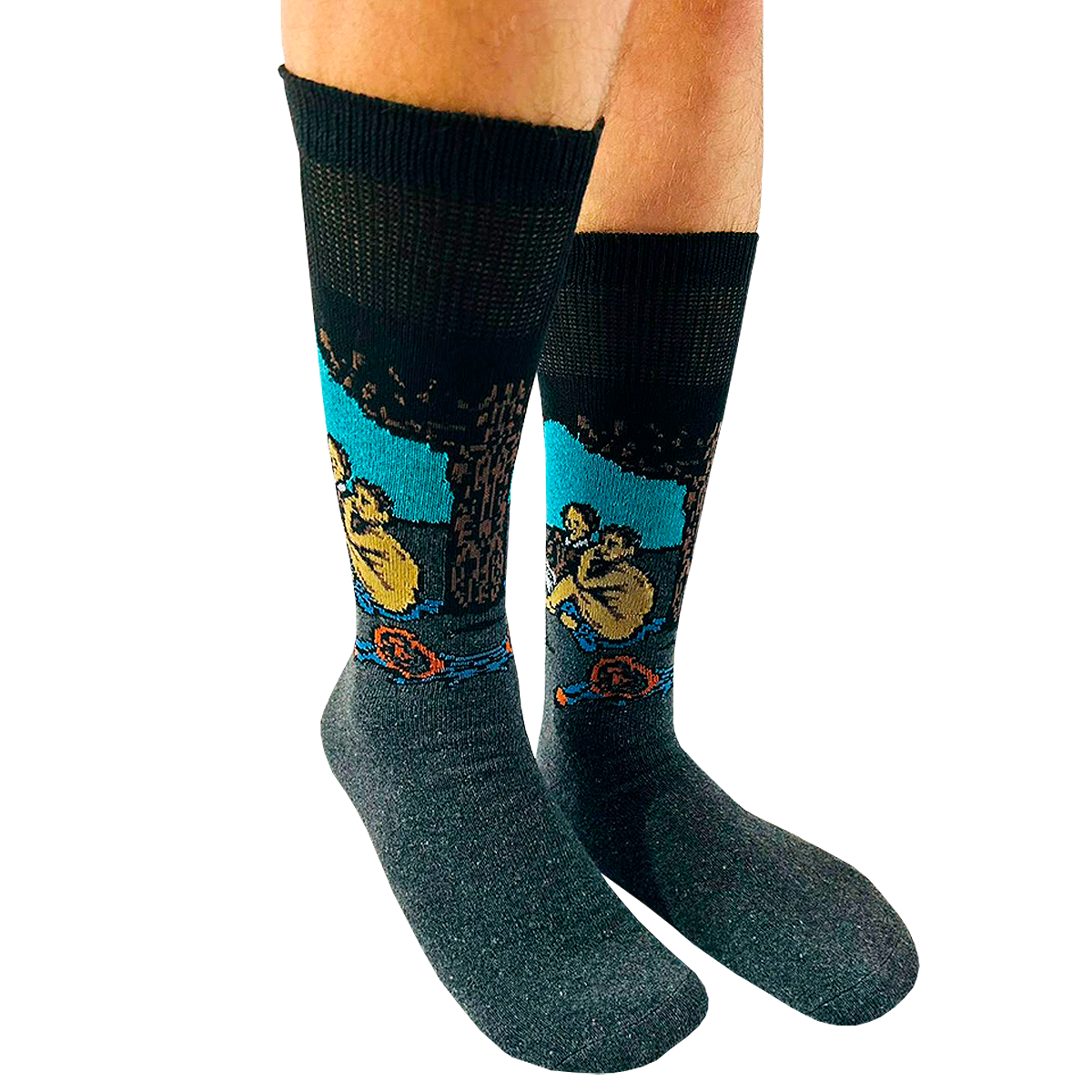Estos calcetines "Almuerzo En La Hierba" son una obra de arte para tus pies. Hechos de materiales de alta calidad, cuentan con un diseño inspirado en la famosa pintura de Claude Monet, "Almuerzo en la hierba". Con ellos, podrás llevar una pieza de la historia del arte a donde quieras y lucir elegante al mismo tiempo. ¡Consíguelos ahora y añádelos a tu colección de calcetines!.