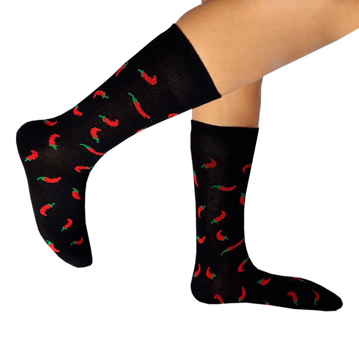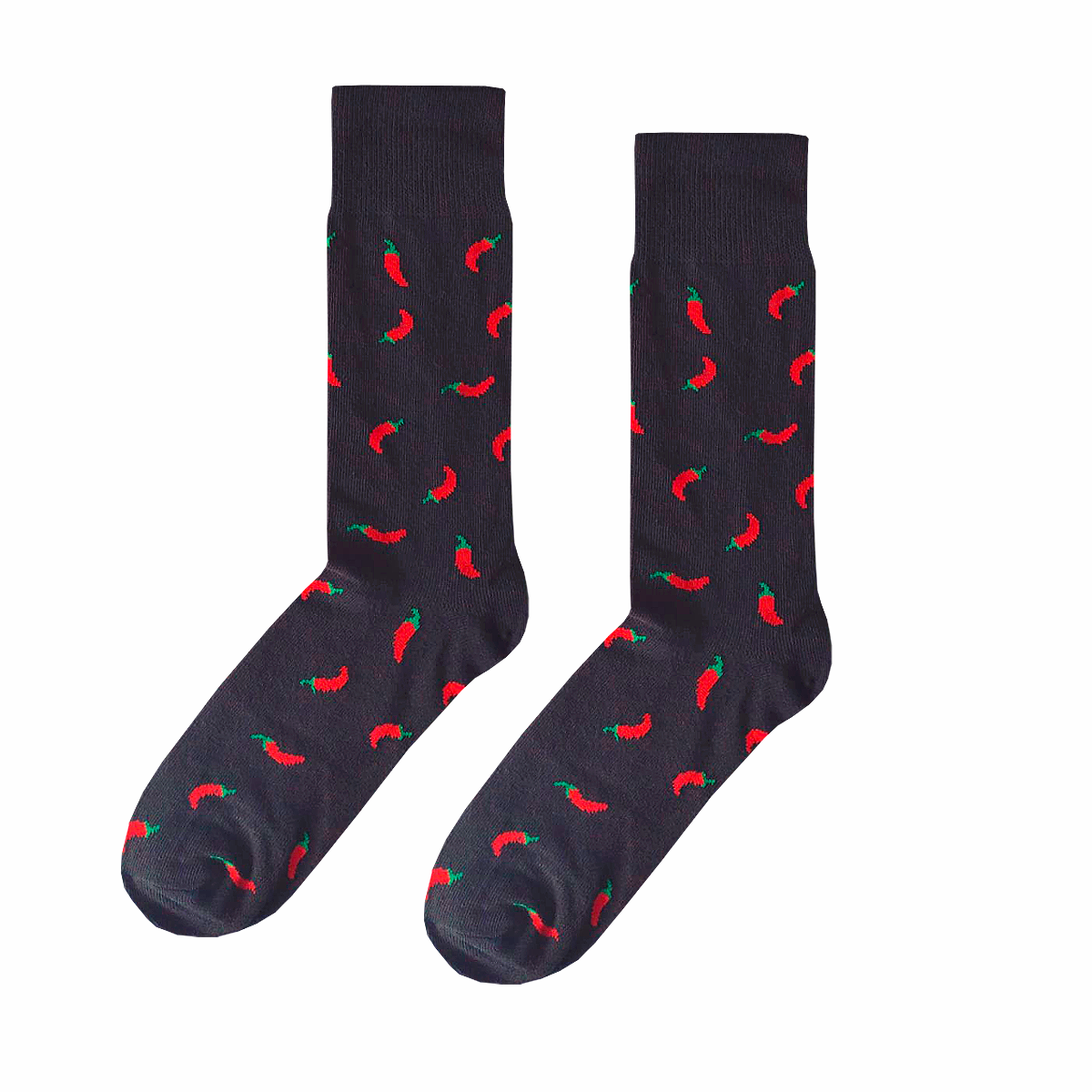 Nuestra línea de calcetines "Chiles" es perfecta para aquellos amantes de la comida picante. Con un diseño divertido y auténtico de chiles, estos calcetines no solo te mantendrán cómodo durante todo el día, sino que también te mostrarán tu amor por la comida mexicana. ¡Haz que tus pies se pongan calientes con nuestros calcetines "Chiles"!.