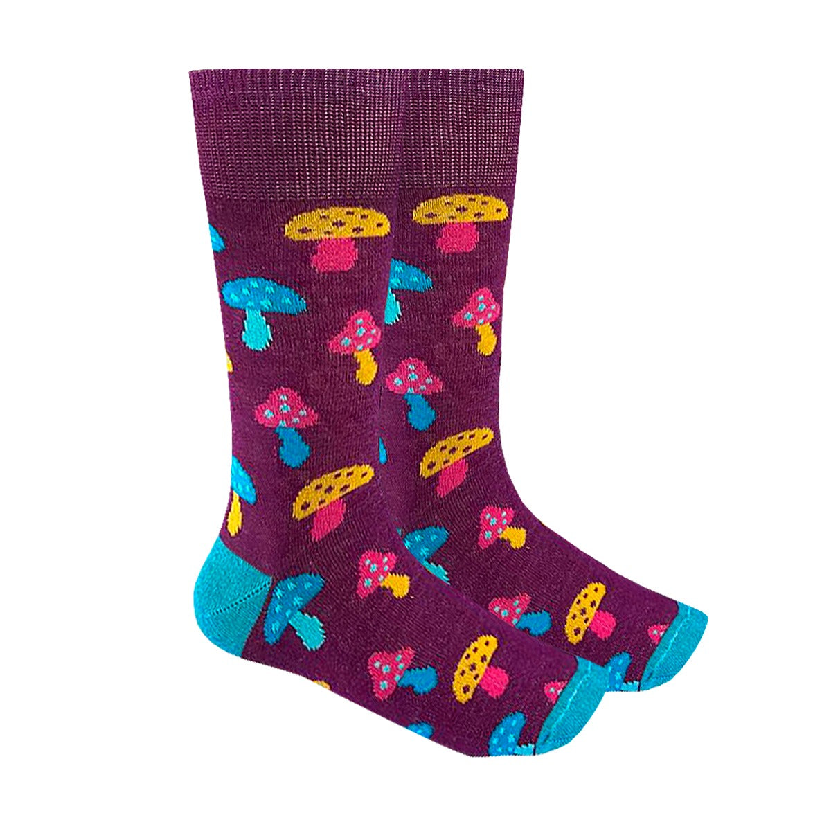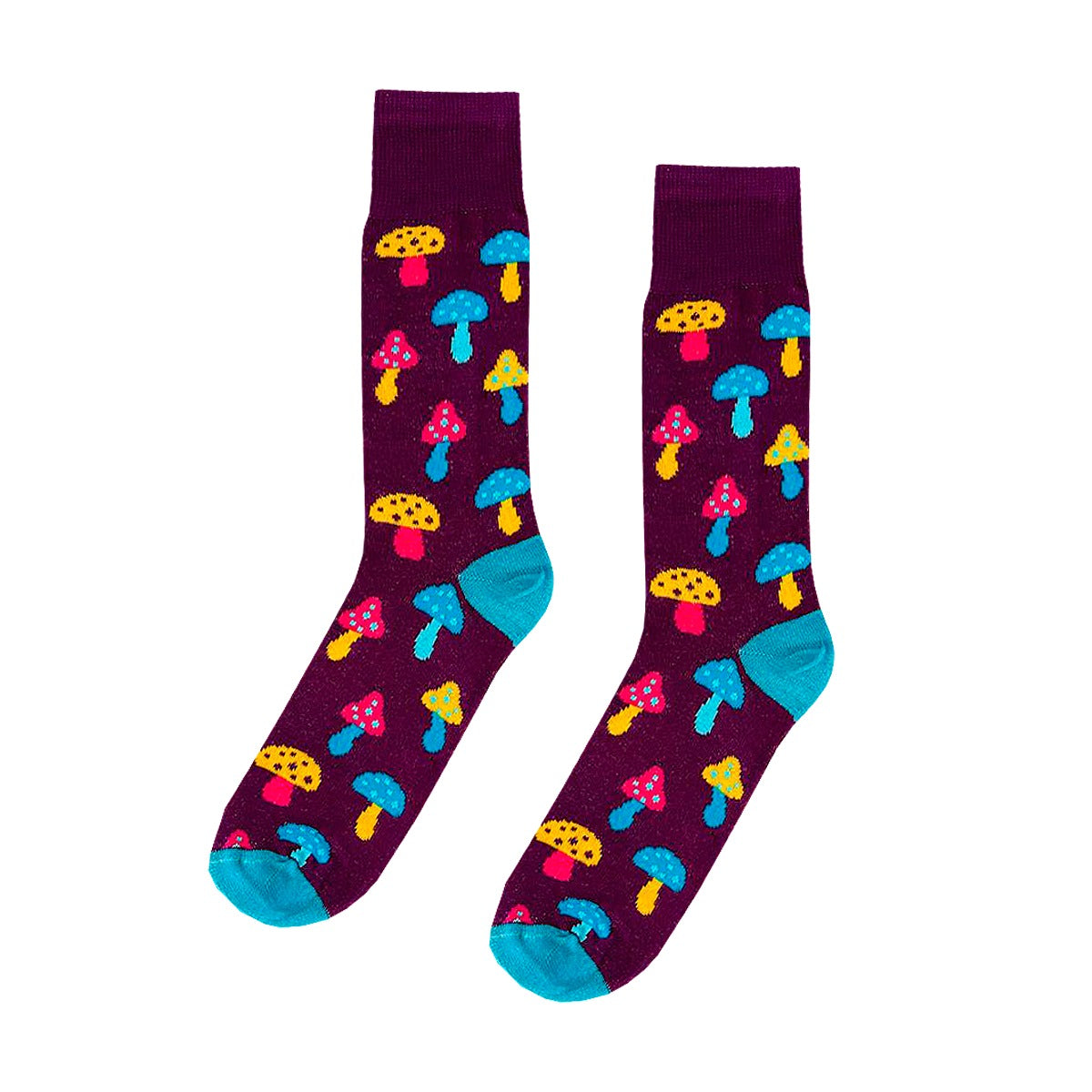 Calcetines de hongos hechos con materiales de alta calidad para brindar comodidad y estilo. Estos calcetines son perfectos para cualquier ocasión y te mantendrán fresco. ¡Atrévete a lucir un look único y divertido con los Calcetines "Hongos Color Morado"!.