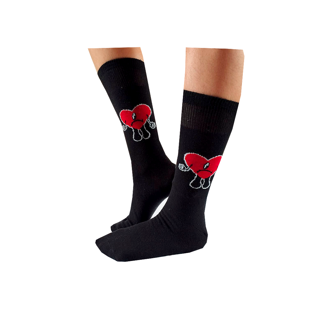 Despierta un estilo único con los calcetines Bad Bunny / "Un Verano Sin Ti" en color negro. Están inspirados en las canciones que te harán vibrar en el verano. Disfruta de su comodidad y estilo con el diseño de un verano sin ti en tus pies. ¡Hazlos parte de tu colección ahora!.