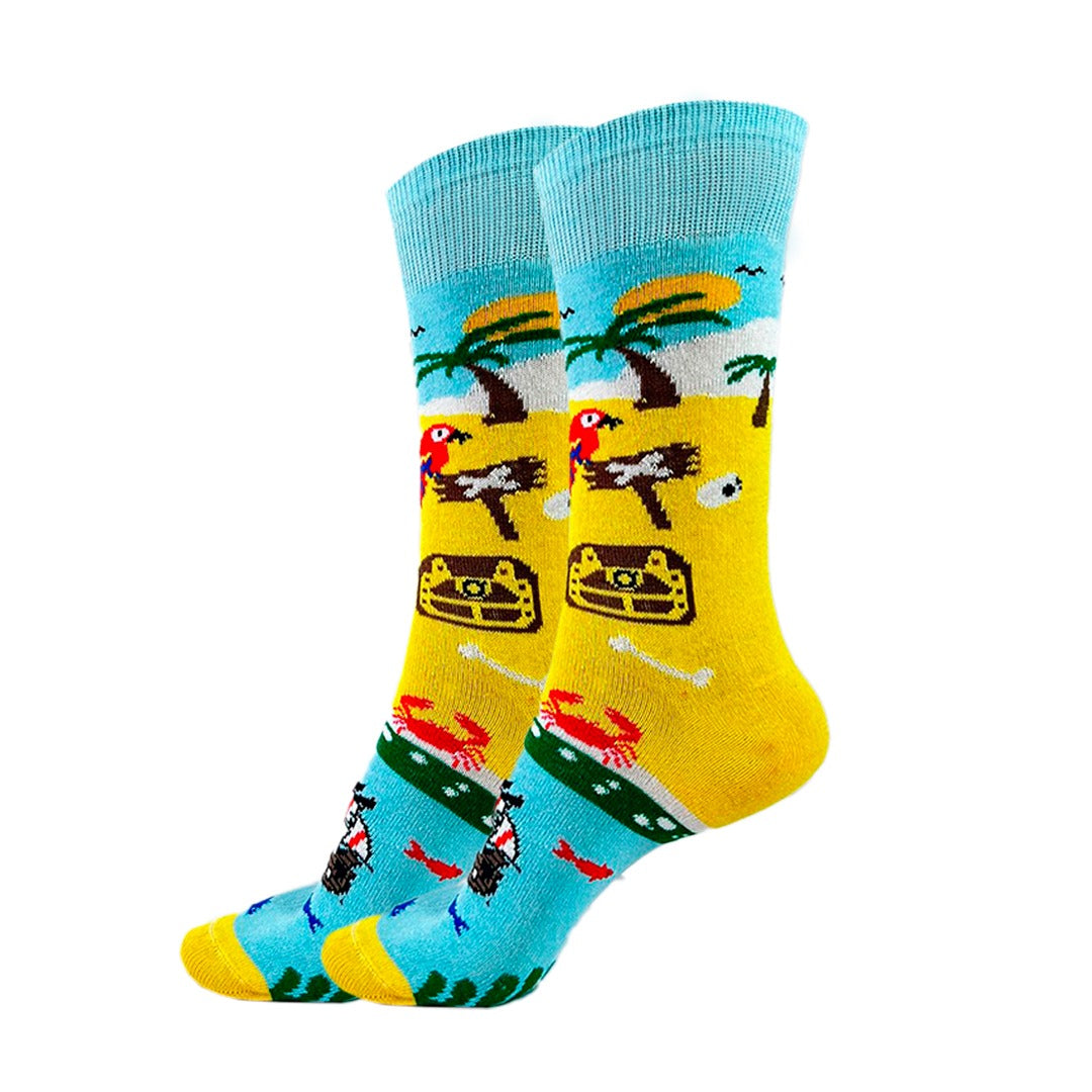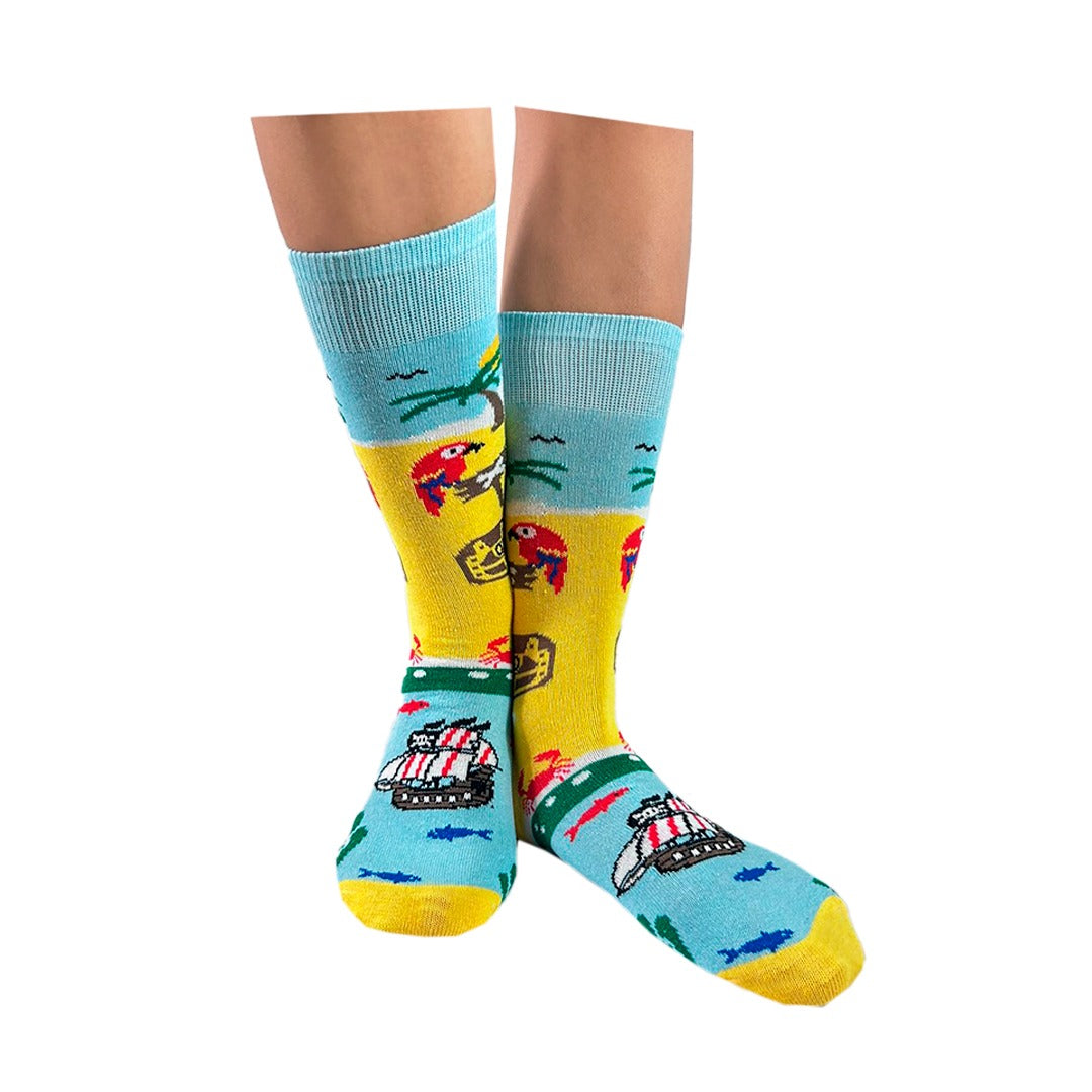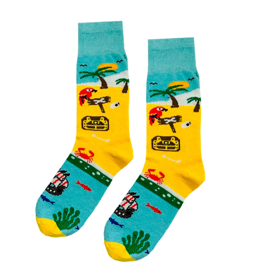 Estos calcetines "tesoro del pirata" combinan comodidad y estilo con un diseño divertido inspirado en la aventura pirata. Fabricados con materiales de alta calidad, ofrecen un ajuste perfecto y duradero, ideales para quienes buscan añadir un toque único y original a su vestuario diario. Perfectos para cualquier ocasión, estos calcetines son un accesorio imprescindible para los amantes de la moda con personalidad.