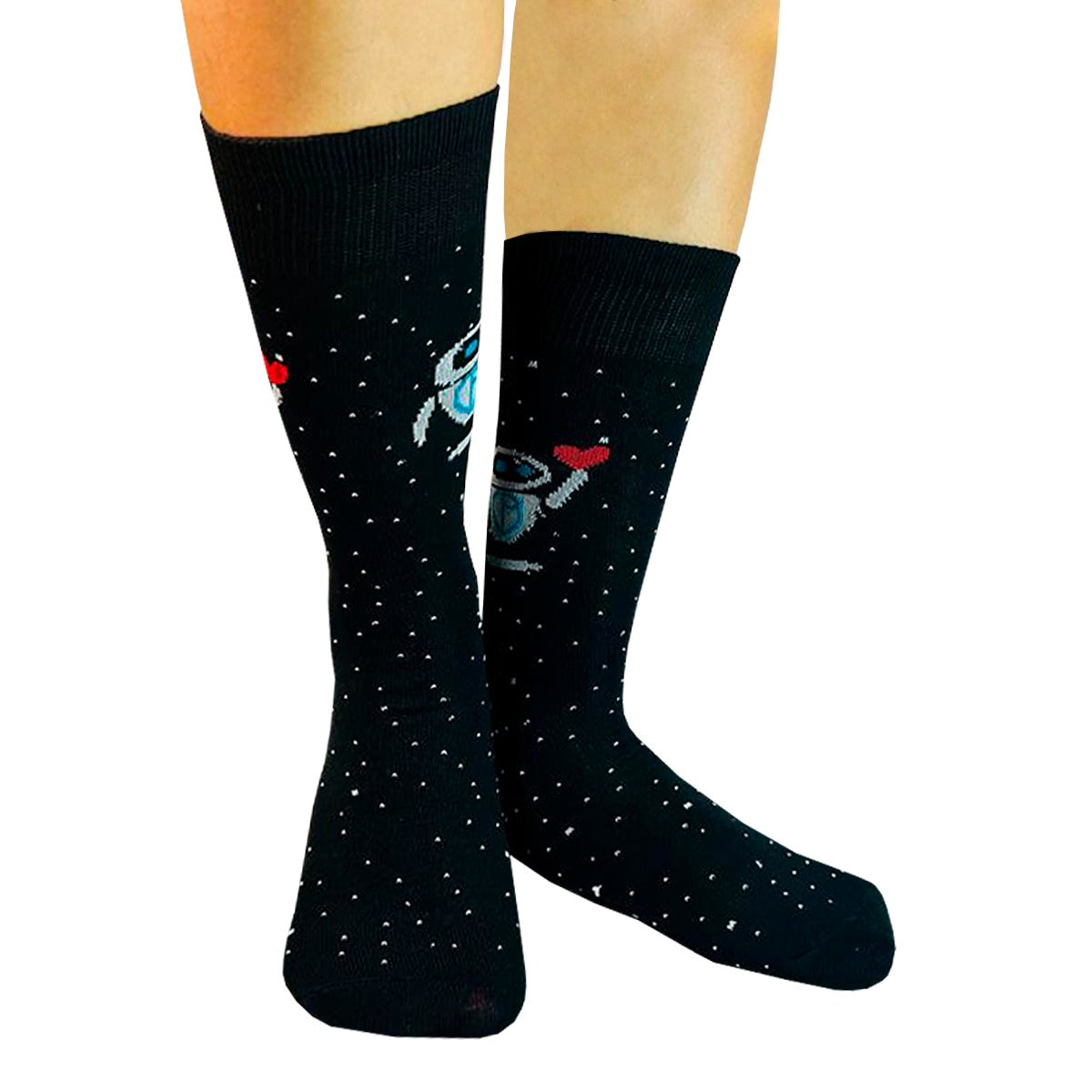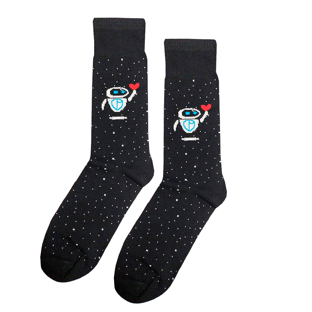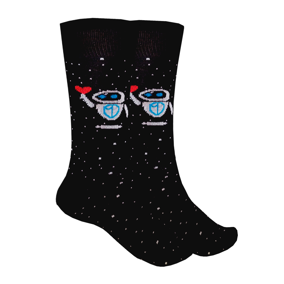 Presentamos los calcetines "Eva", inspirados en el carismático personaje Wall-E. Confeccionados en suave Eva, estos calcetines te brindarán comodidad y estilo a partes iguales. Perfectos para cualquier ocasión, ¡hazte con ellos y presume de tu amor por la ciencia ficción!.