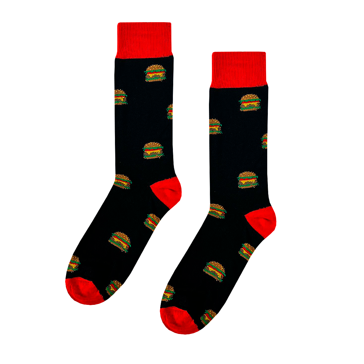 Los calcetines "Hamburguesas" son la adición perfecta a tu colección de calcetines divertidos. Con su diseño de hamburguesas, estos calcetines son un complemento único y llamativo para cualquier atuendo. Hechos con materiales de alta calidad, serán cómodos y duraderos, ¡garantizando que tus pies estén felices todo el día!.