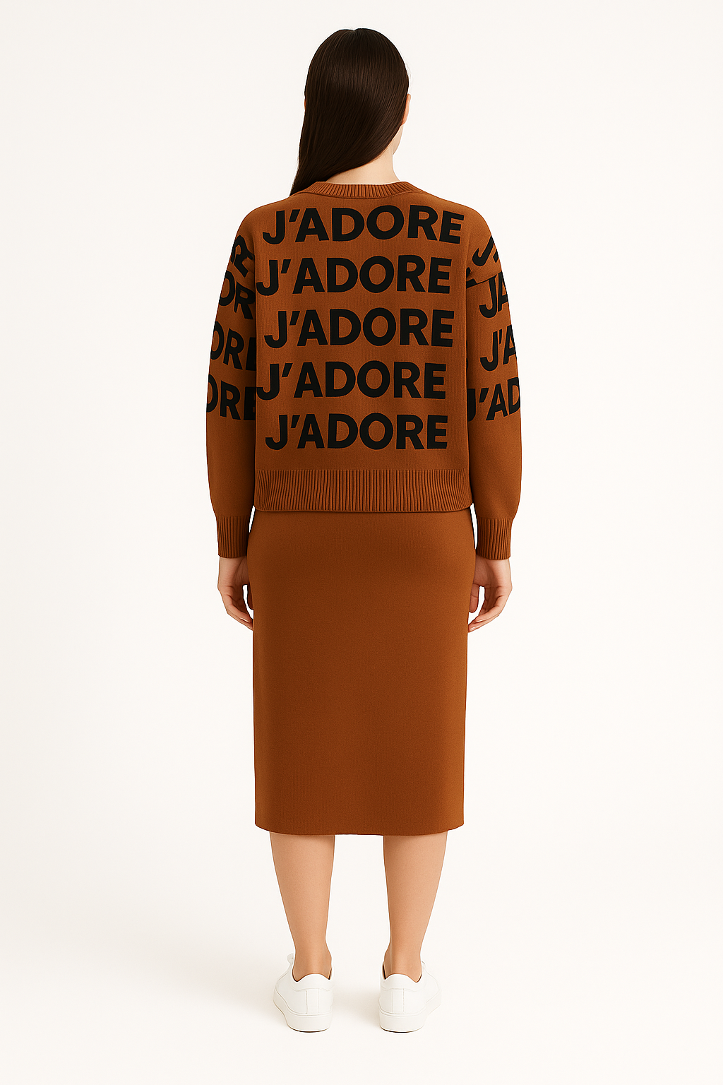 El conjunto de ropa Falda y Suéter de la marca Genevieve es la elección perfecta para la mujer moderna que busca estilo y elegancia. Este conjunto destaca por su diseño sofisticado, ideal para ocasiones formales o eventos especiales. La falda midi, con un corte femenino y una cintura alta, se adapta a la silueta, brindando un look que realza la figura de quien lo lleva.