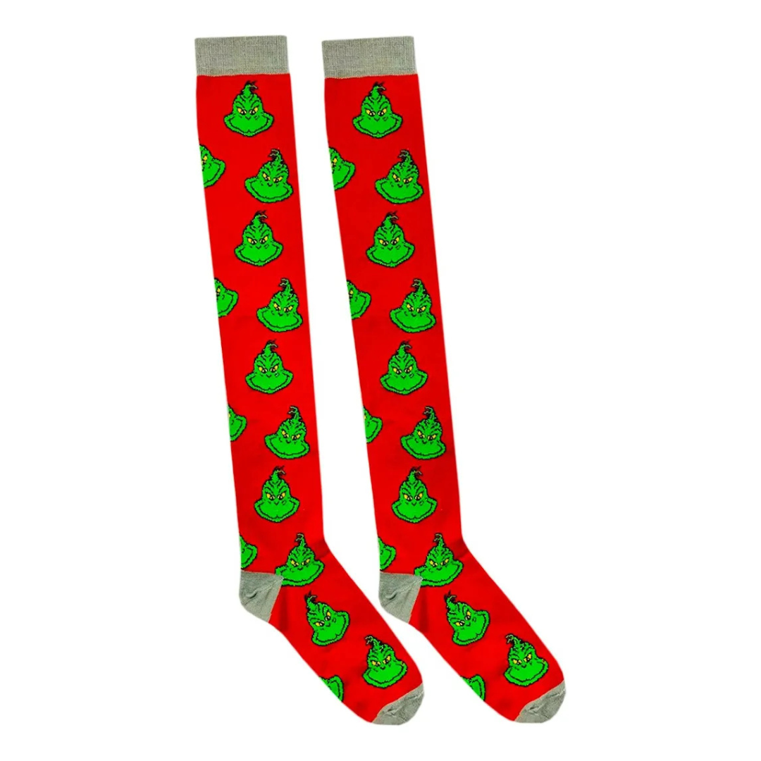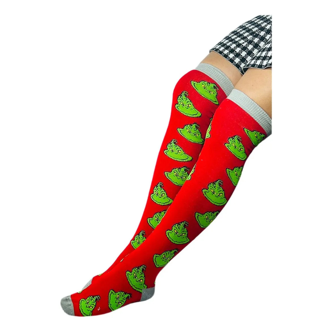 Medias Extra Largas Navideñas Dama Algodón "Grinch"