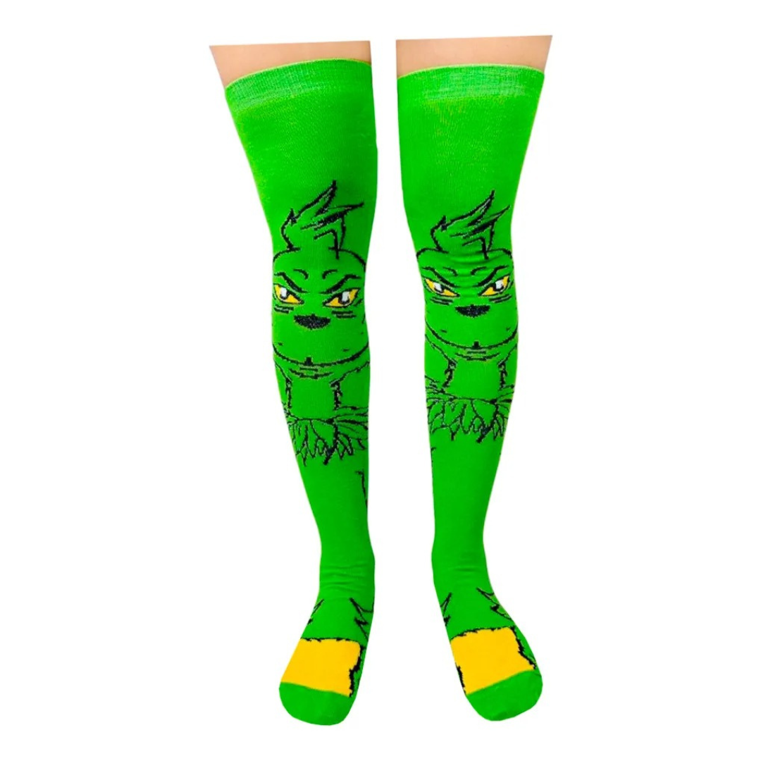 Medias Extra Largas Navideñas Dama Algodón "Grinch Completo"