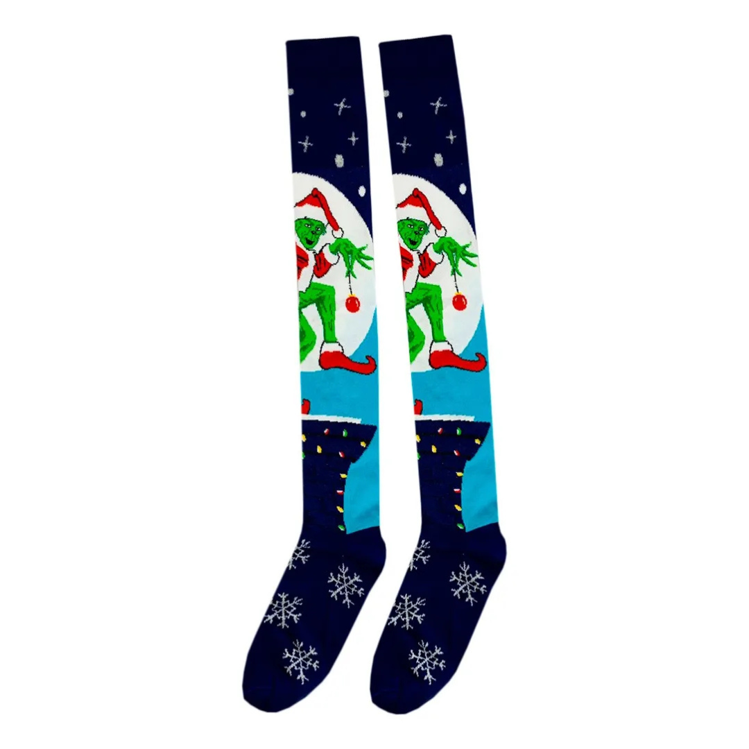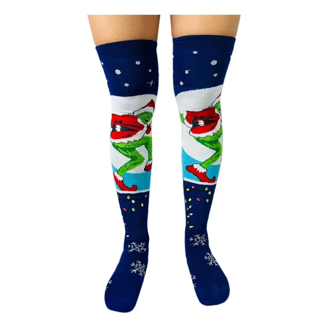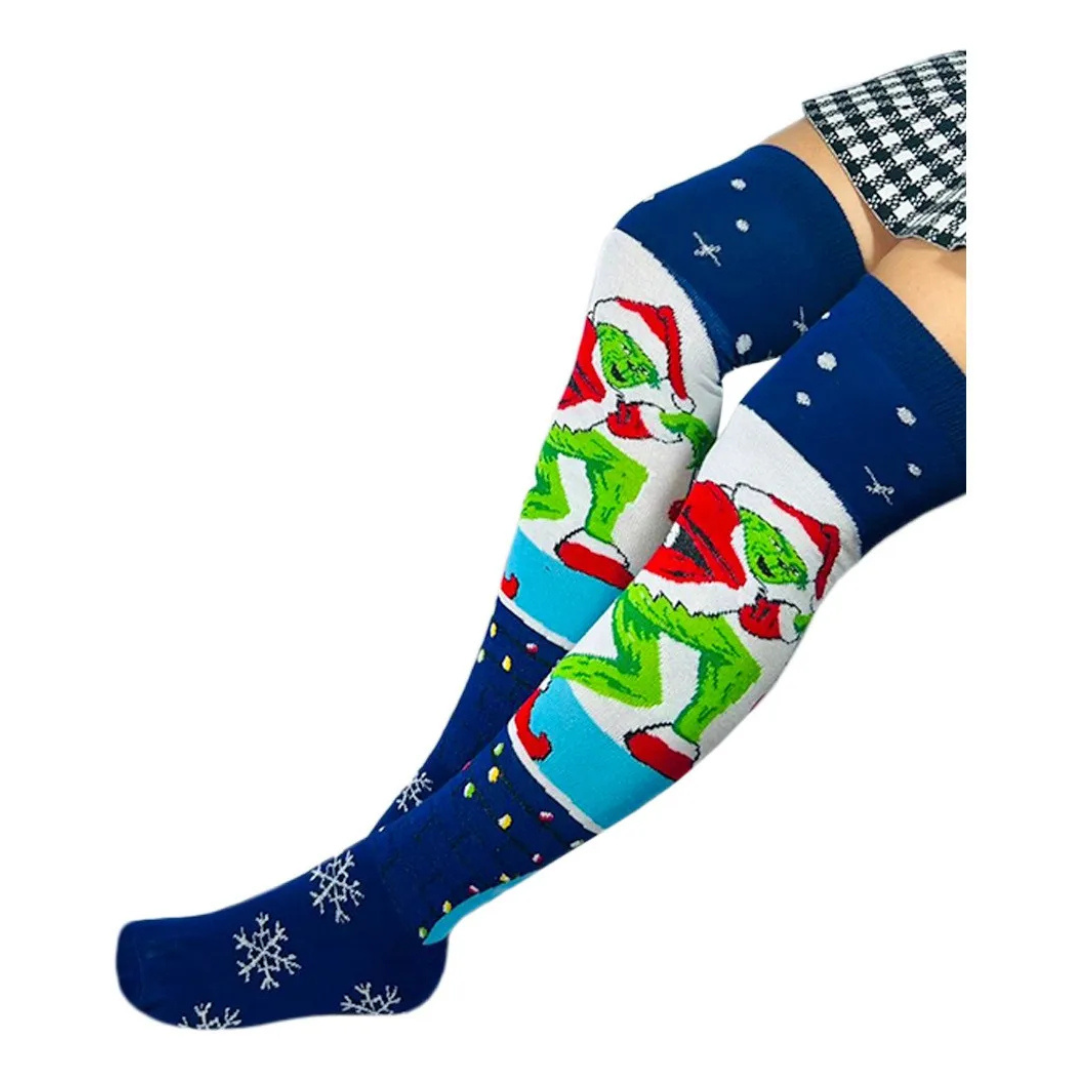 Medias Extra Largas Navideñas Dama Algodón "Grinch Santa Claus"