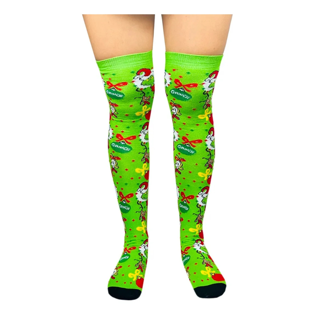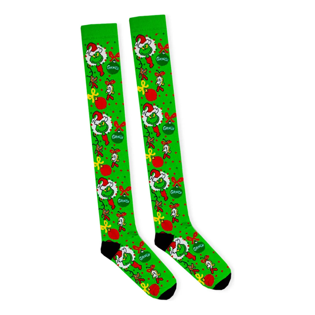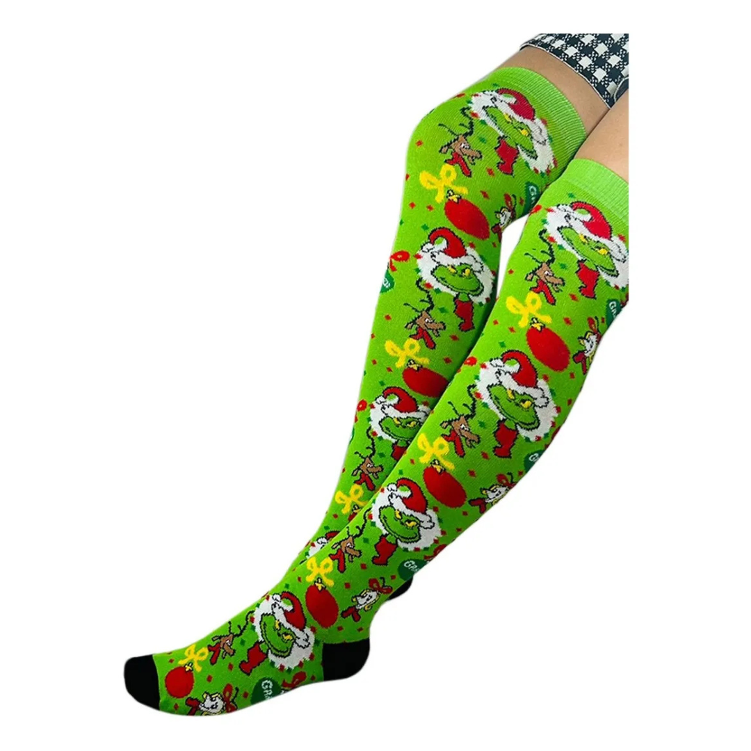 Medias Extra Largas Navideñas Dama Algodón "Grinch Y Los Quién"