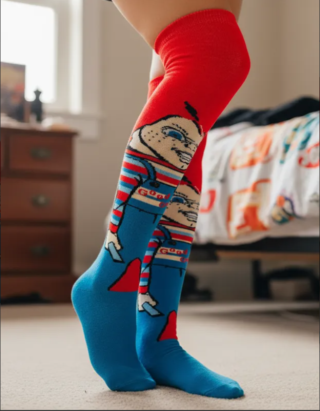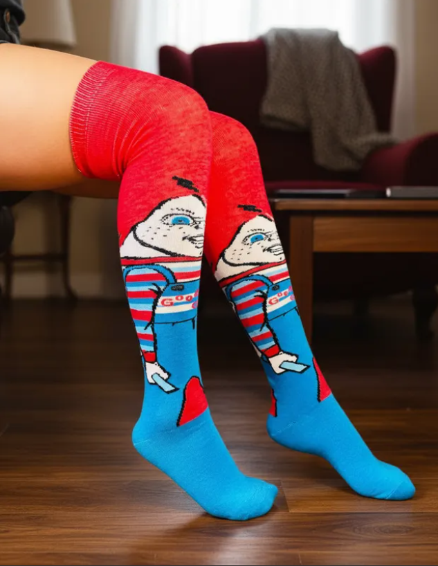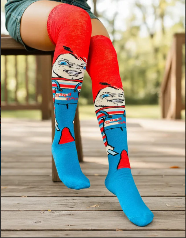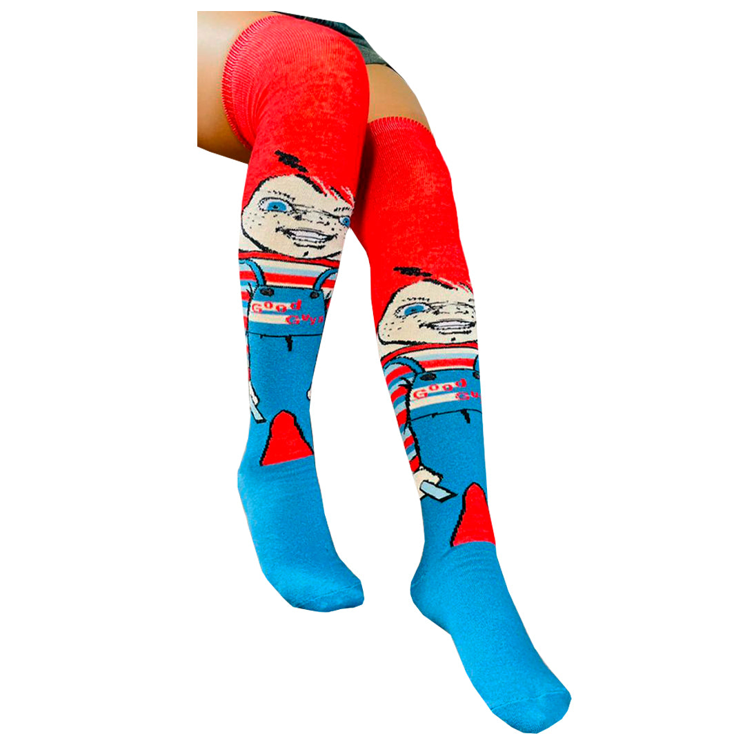 ¡Consigue un look espeluznante este Halloween con nuestras media de Chucky! Hechas de material de alta calidad, estas medias son perfectas para completar cualquier disfraz de Halloween. ¡Agrega un toque de diversión y estilo a tu atuendo con estas medias de diseño único!.