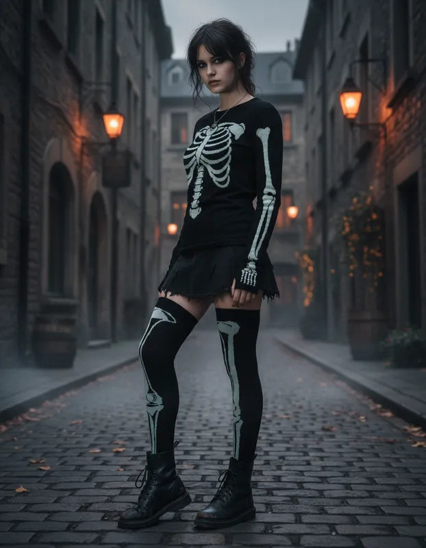 El diseño destaca por su originalidad, atrayendo todas las miradas mientras disfrutas de la temporada de Halloween. Con su largo adicional, son perfectas para llevarlas con botas altas o por encima de los tobillos, añadiendo un elemento inesperado a tu look.