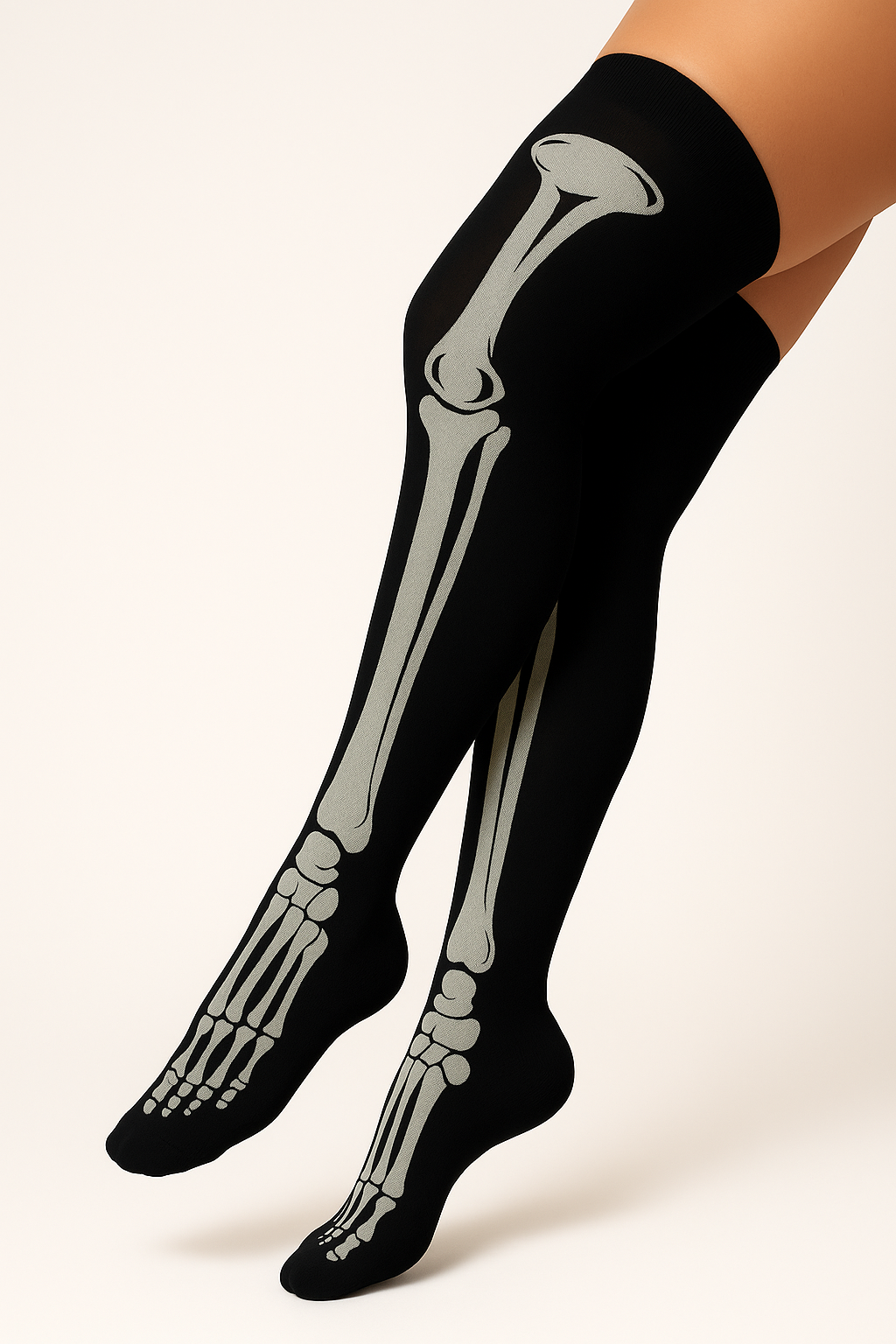 ¡Consigue un look espeluznante este Halloween con nuestras media de hueso! Hechas de material de alta calidad, estas medias son perfectas para completar cualquier disfraz de Halloween. ¡Agrega un toque de diversión y estilo a tu atuendo con estas medias de diseño único!.