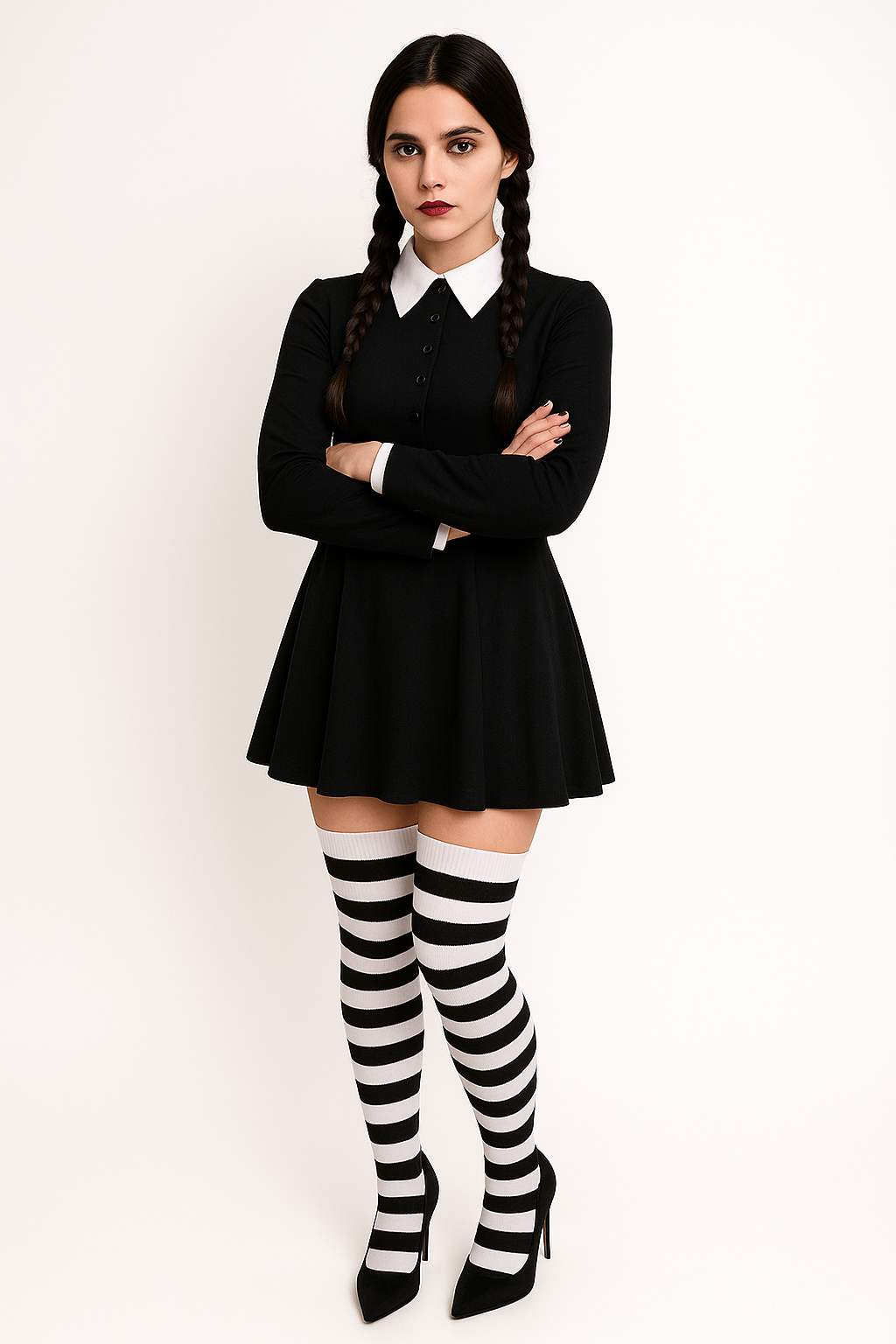 ¡Consigue un look espeluznante este Halloween con nuestras medias de rayas negras y blancas! Hechas de material de alta calidad, estas medias son perfectas para completar cualquier disfraz de Halloween. ¡Agrega un toque de diversión y estilo a tu atuendo con estas medias de diseño único!.