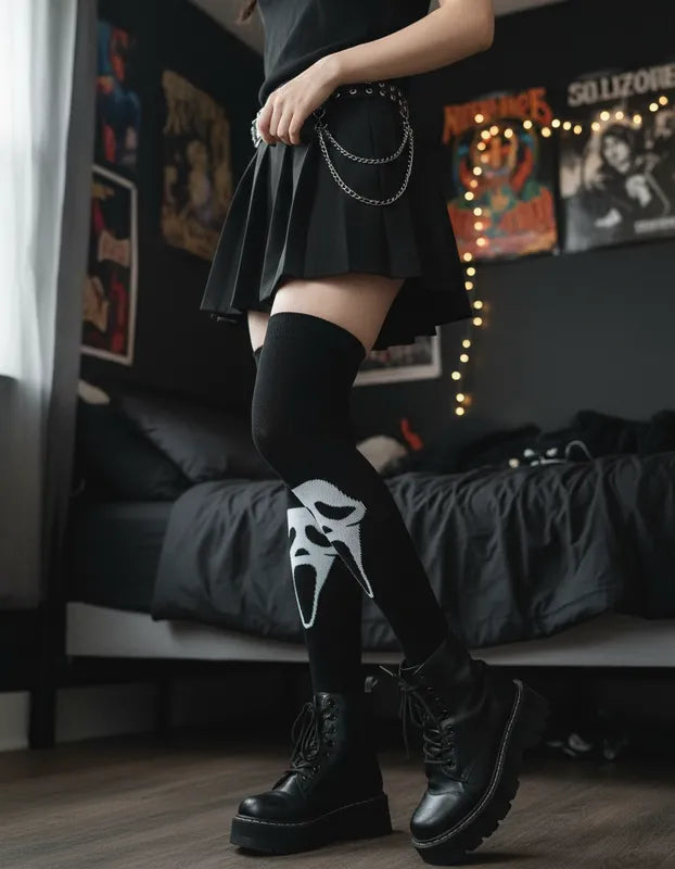 ¡Consigue un look espeluznante este Halloween con nuestras medias de Scream! Hechas de material de alta calidad, estas medias son perfectas para completar cualquier disfraz de Halloween. ¡Agrega un toque de diversión y estilo a tu atuendo con estas medias de diseño único!.
